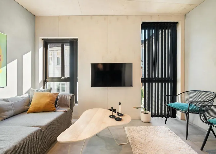 The Double Date I Architectural I Free Parking! Bergen appartement van 35 m^2 ligt op slechts 7-minuten wandelafstand van de Fløibanen. De 1-badkamer accommodatie heeft wifi, samen met parkeerplaatsen voor gasten, die met de auto reizen.
